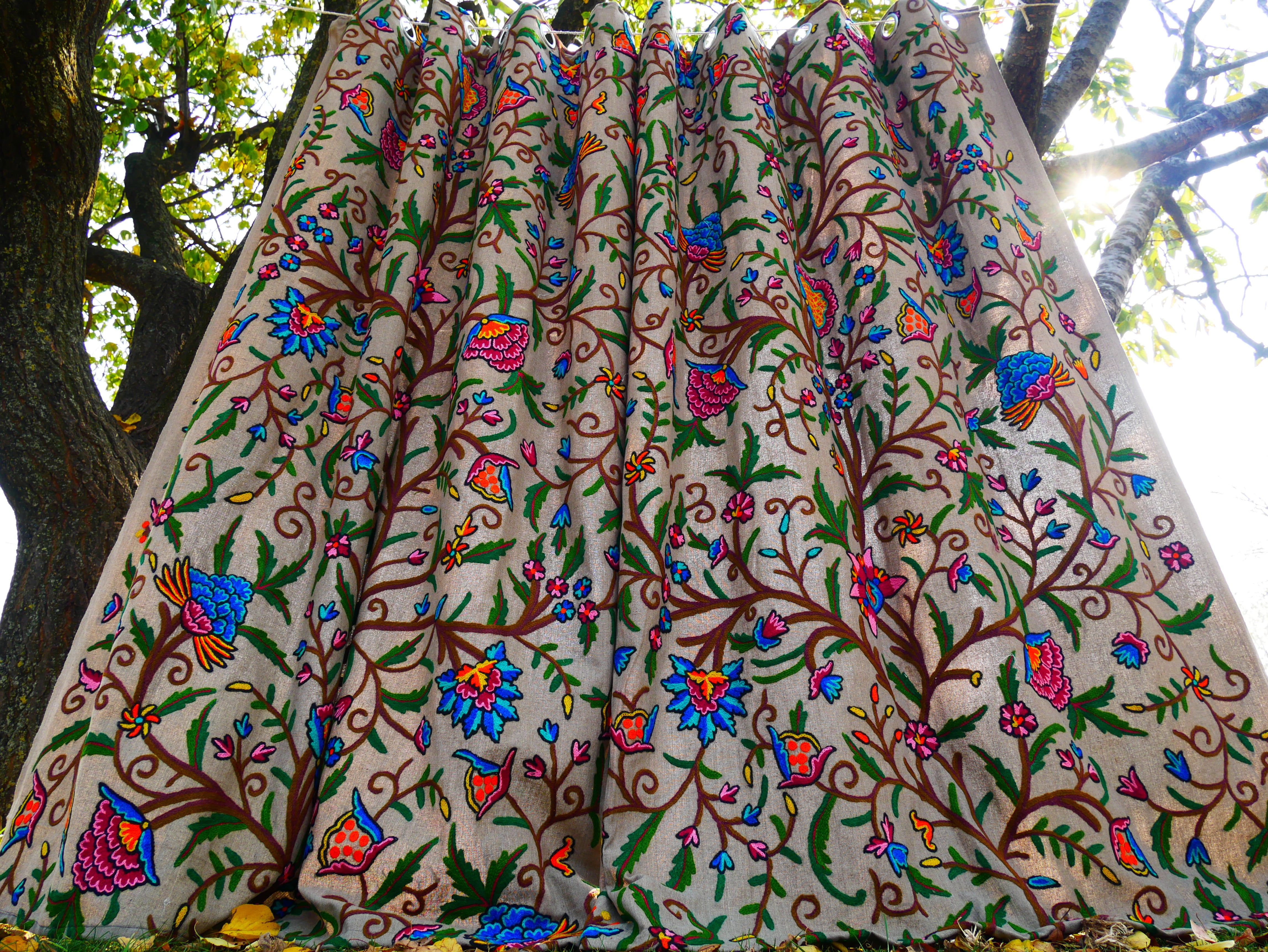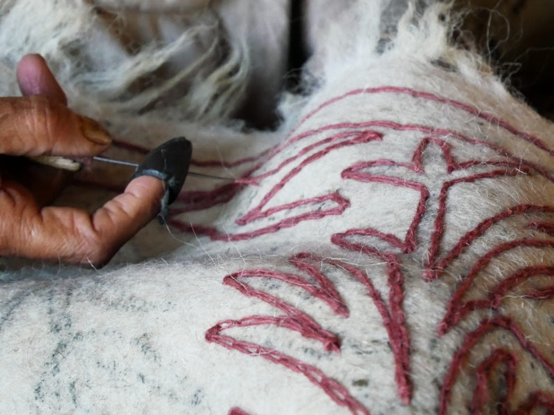 Hand-embroidered in Kashmir, India – made by skilled artisans using centuries-old techniques.