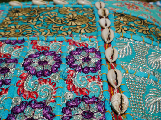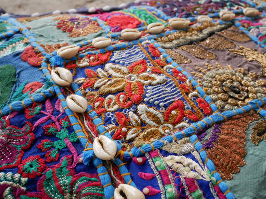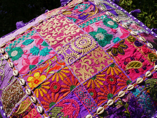 Kashmiri floor pillow "Shanti" | large meditation cushion - hand embroidered - cotton and wool