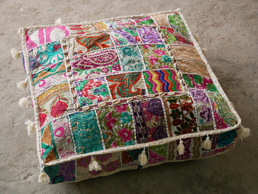 Kashmiri floor pillow cover - Meditation cushion "Shanti" 24x24 inches
