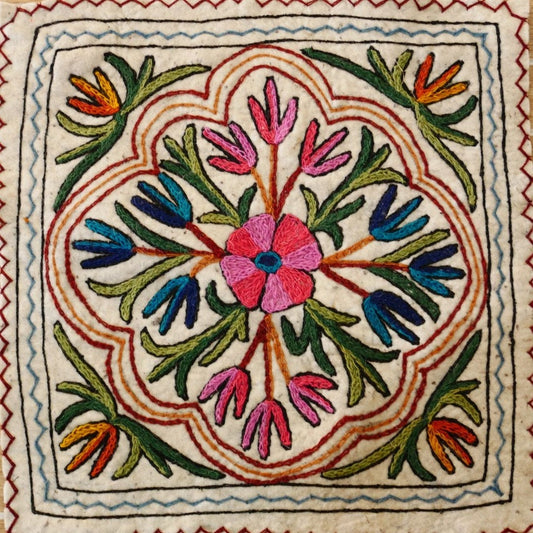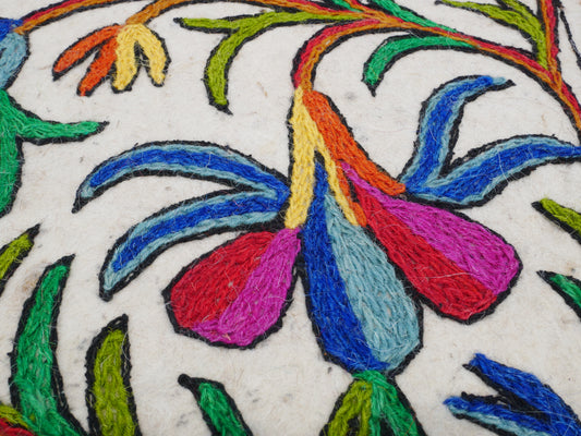 Artisan Namda Wool Rug From Kashmir | Bird & Bloom Hand Embroidery | Traditional Floor Art