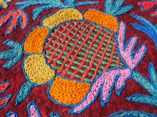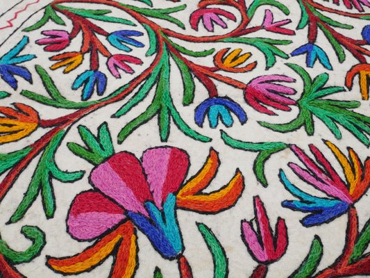 Kashmiri Namda "Tree of life" traditional hand felted and embroidered rug | Colorful boho style rug for cozy home decor