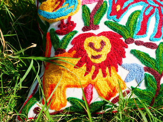 Colorful Crewel Pillow Cover "Boho Jungle" Handcrafted by Artisans 16x16 inches Kashmiri Embroidery Pillow