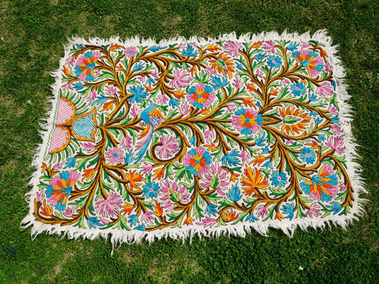 Colorful Kashmiri Crewel Pillow Cover: Handcrafted by Artisans 16x16 inches Flower Embroidery Pillow (Kopie)