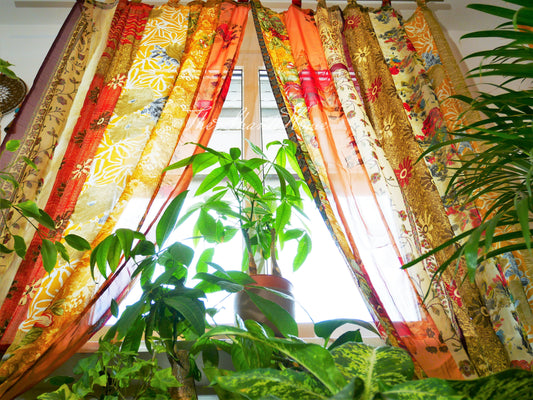Boho Vorhänge Indische Saree-Vorhänge | handgefertigte Patchwork-Vorhänge für böhmische Fensterdekorationen im Hippie-Schlafzimmer