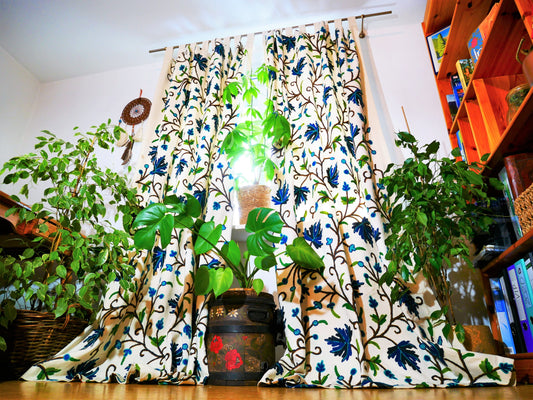 Kashmiri Embroidery curtain - Hand embroidered Flower curtains - cotton and wool bedroom curtain- Boho curtain