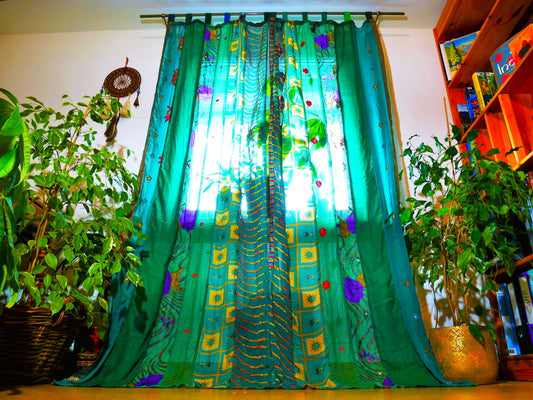 Türkisblauer Vorhang - Indische Vintage Saree-Vorhänge