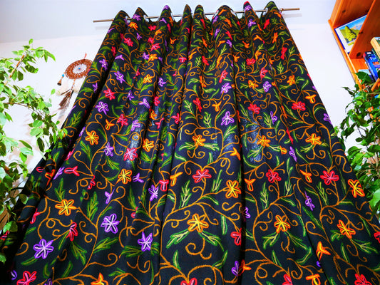 Amazing Embroidery curtain - Hand embroidered Flower curtains - Kashmiri cotton and wool bedroom curtain- Boho curtain