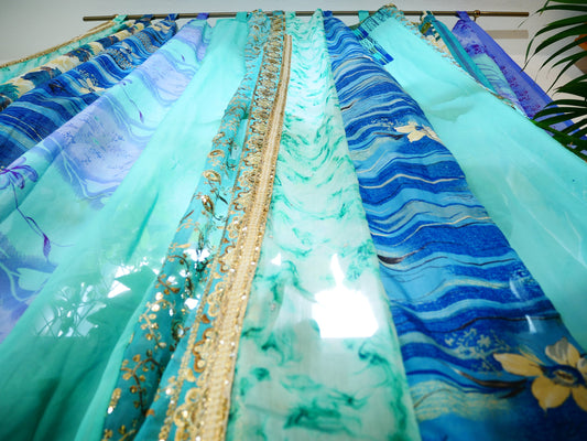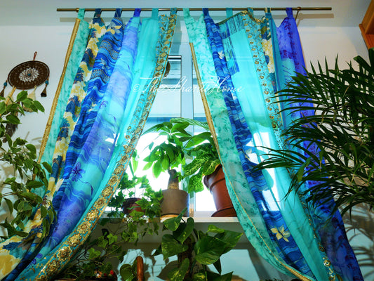 Boho Sari Vorhang türkis | handgefertigte Patchwork-Vorhänge | Betthimmelvorhänge