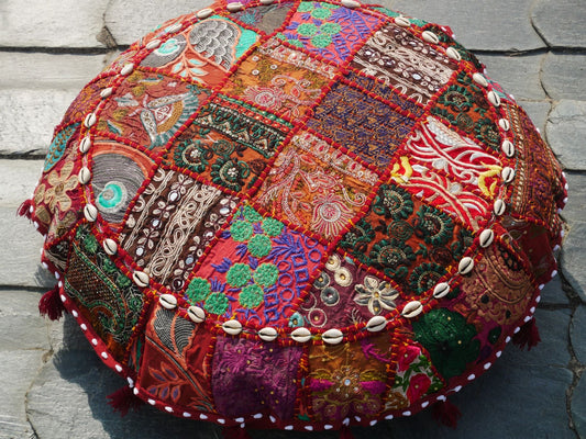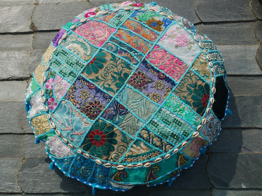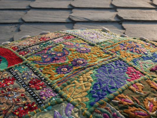 Kashmiri Bodenkissen "Shanti" runder Bodenkissenbezug | großes Meditationskissen - handbestickt - Kissenbezug