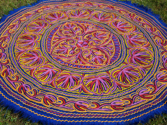 Kashmiri Namda Teppich 5ft - Mandala Wollteppich - Boho-Teppich handgefilzt und bestickt