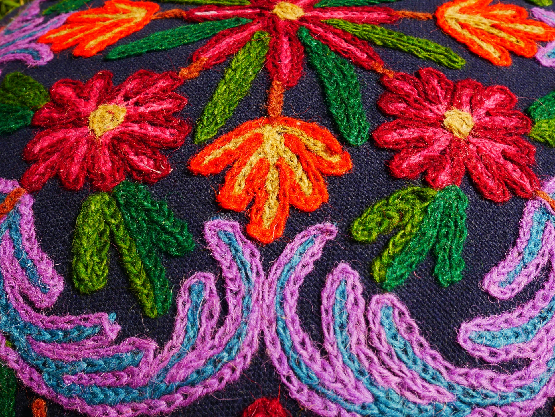 Die feine Nadelkunst Kaschmirs ist auf der ganzen Welt berühmt. Man findet ihre Nadelkunst in Pashmina-Tüchern, Seiden- oder Wollteppichen und bestickten Heimtextilien und Dekorationen.