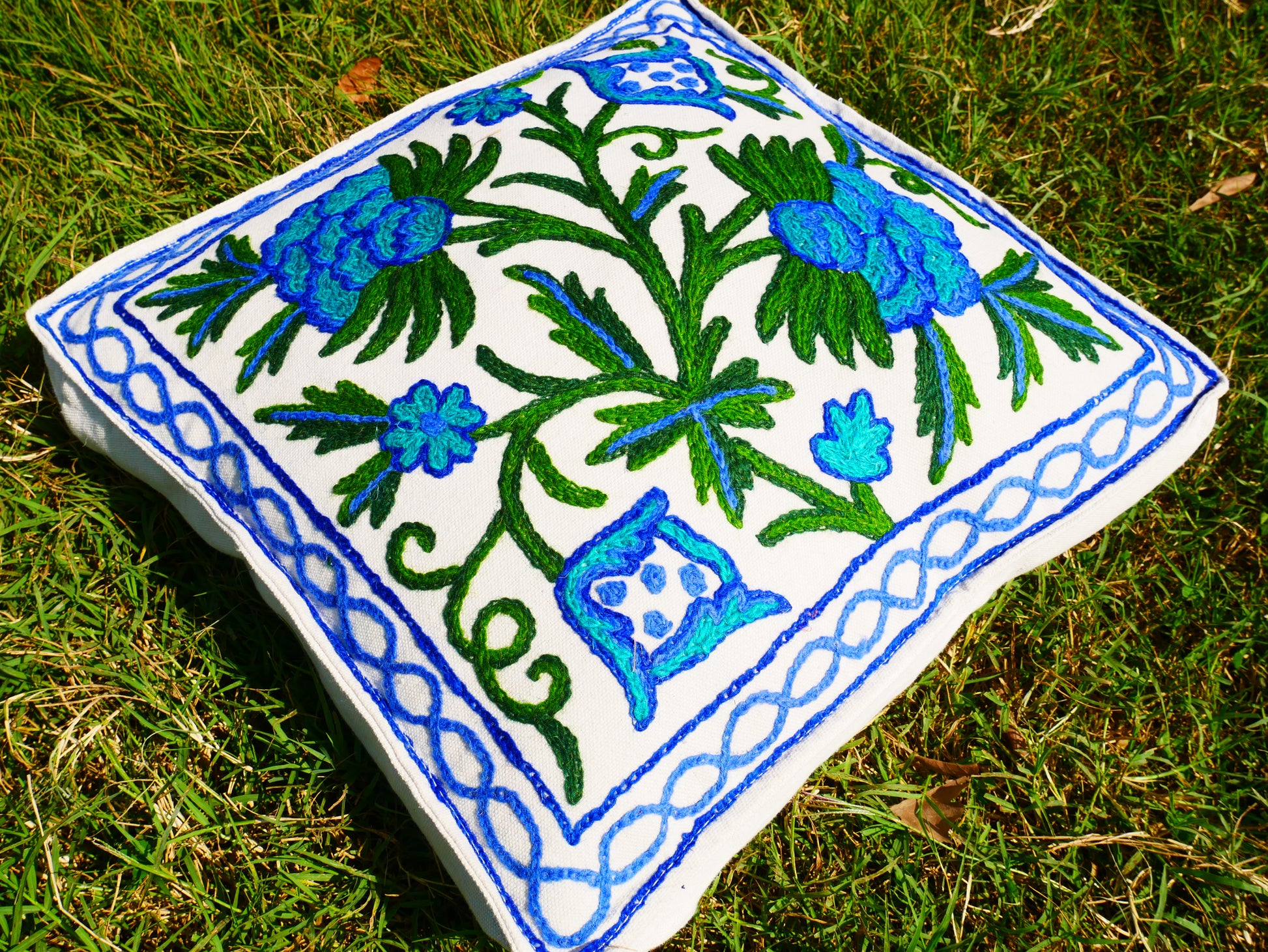 Kashmiri Bodenkissen "Shanti" runder Bodenkissenbezug | großes Meditationskissen - handbestickt - Kissenbezug