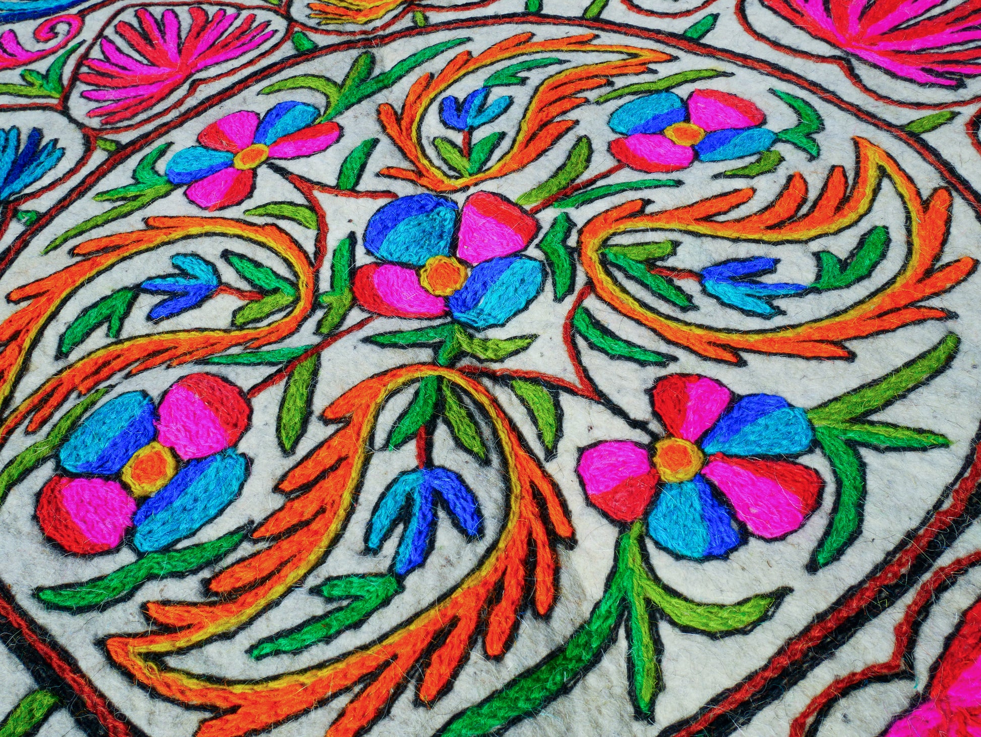 Im mystischen Staat Kaschmir in der nordindischen Himalaya-Region ist es Tradition, egal ob arm oder reich, auf dem Boden zu sitzen, und der Boden kann in der Himalaya-Region Kaschmir sehr kalt werden. Namdas aus reiner Wolle – von Hand gefilzt und bestickt – sind nicht nur dekorative Teppiche und zauberhafte, einzigartige Textilkunstwerke, sondern auch die beste Antwort auf kalte Böden und perfekt für schöne Sitzgelegenheiten auf dem Boden. Sie werden auch als dekorative Bettdecken verwendet oder um jede Ecke des Hauses mit ihrer schönen Stickerei als böhmischen Wandteppich zu schmücken. Wie wäre es, sie für Ihre gemütliche Boho-Schlafzimmerecke zu verwenden? Sie werden das „natürliche Gefühl“ lieben!