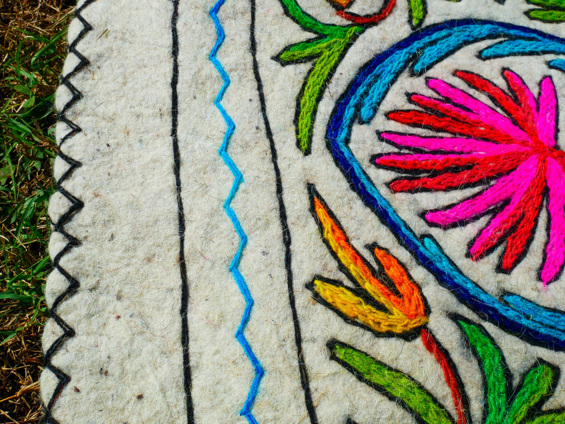 Handgefilzter Teppich "Namda" aus reiner Wolle und handbestickt