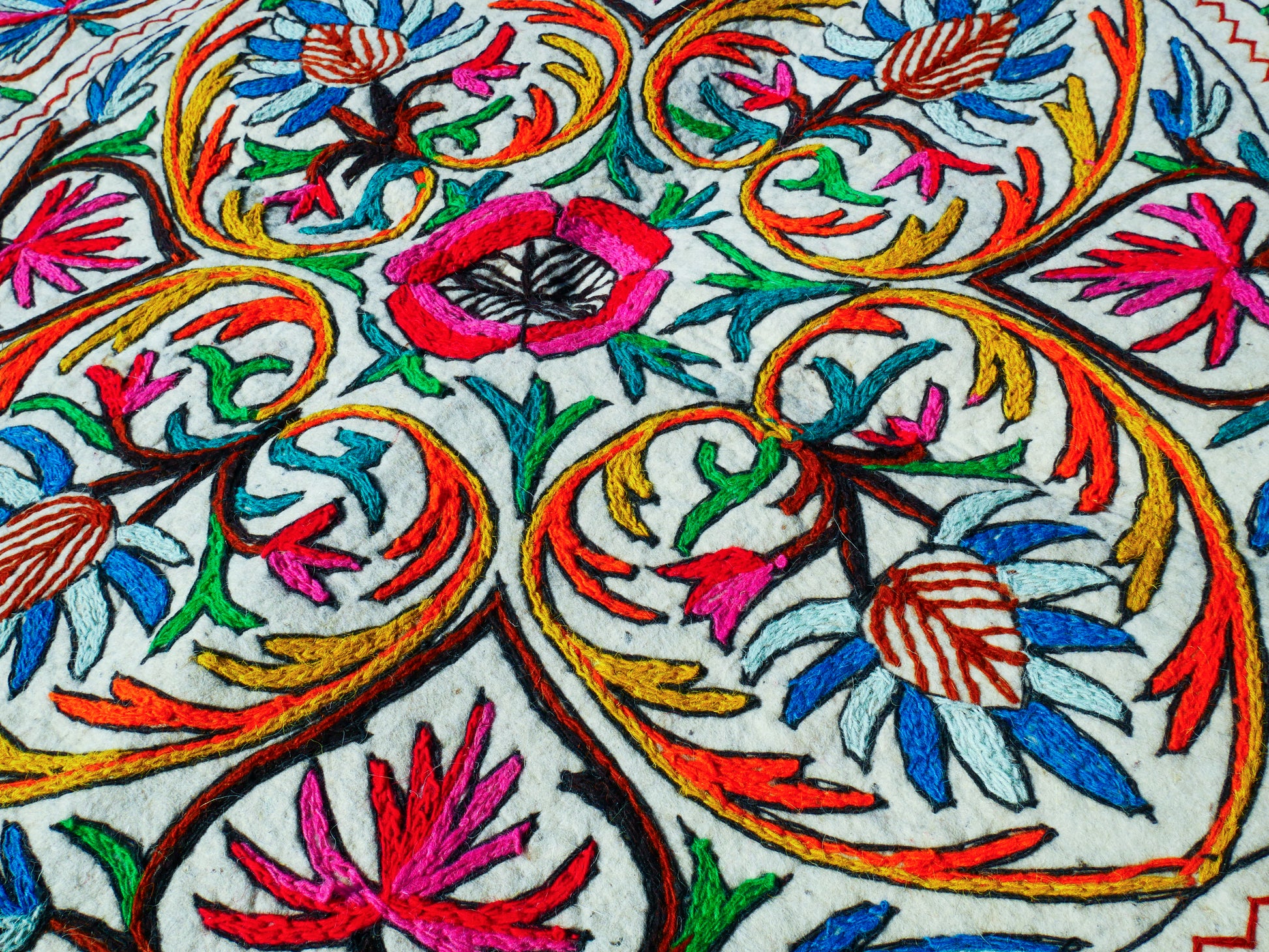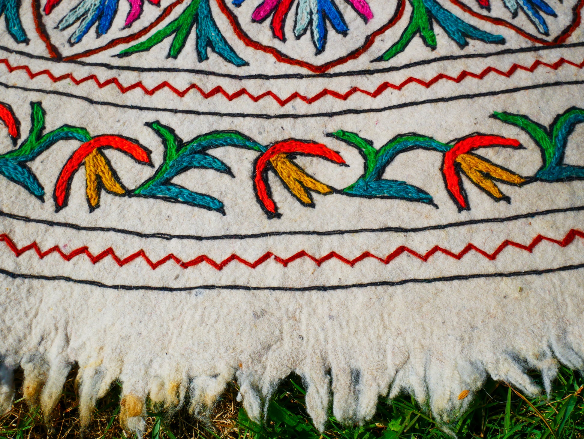 Handgefilzter Teppich "Namda" aus reiner Wolle und handbestickt