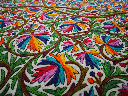 Bohemian bedding - luxury Indian bed throw | Kashmir Crewel embroidery - colorful bedspread, floral design