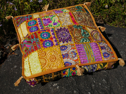• Kashmiri Meditation cushion Embroidery floor pillow cover, Hand embroidered flower Mandala - boho hippie floor seating | Cover only