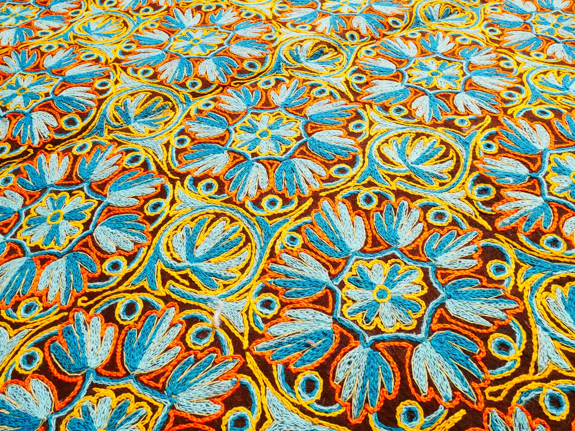 In the mystique state of Kashmir in the North Indian Himalayan region, no matter poor or rich, it is traditional to sit on the floor and the floor can get really cold in the Himalayan region of Kashmir. Namdas, made of pure wool - hand felted and embroidered, are not only decorative rugs and magical, unique pieces of textile art, but also the best answer to cold floors and perfect for beautiful floor seating arrangements. They are also used as decorative bed covers or to adorn any corner of the home with its beautiful embroidery as bohemian tapestry How about using it for your cozy boho bedroom corner? You will love the "natural feeling" of it!