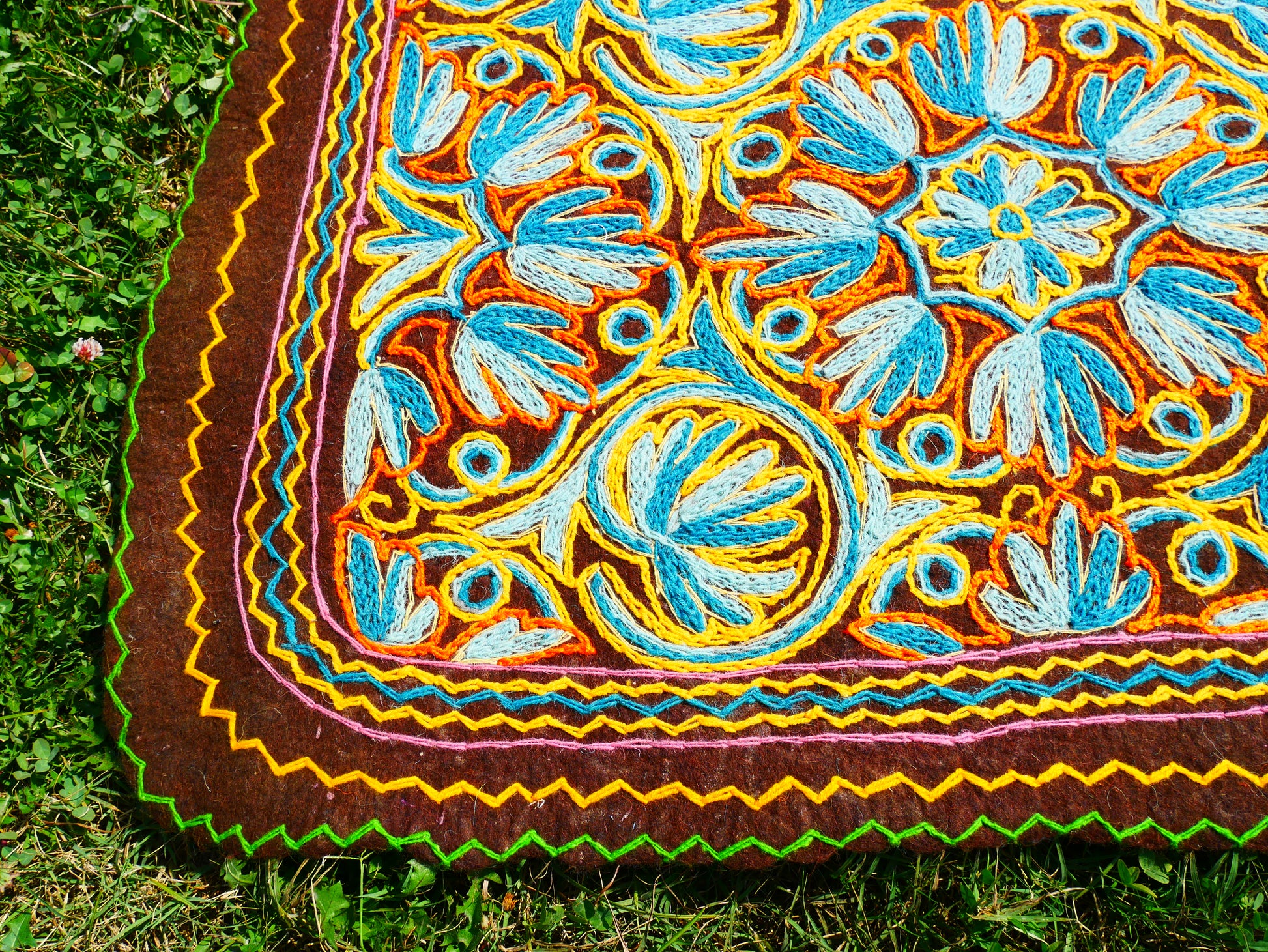 Hand felted wool rug "Namda" made of pure wool and hand embroidered