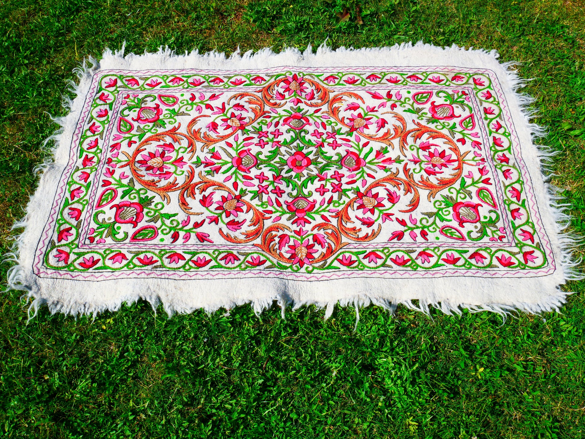 Very Special Hand-Embroidered Namda Wool Rug – 6×4 ft Embroidery Rug