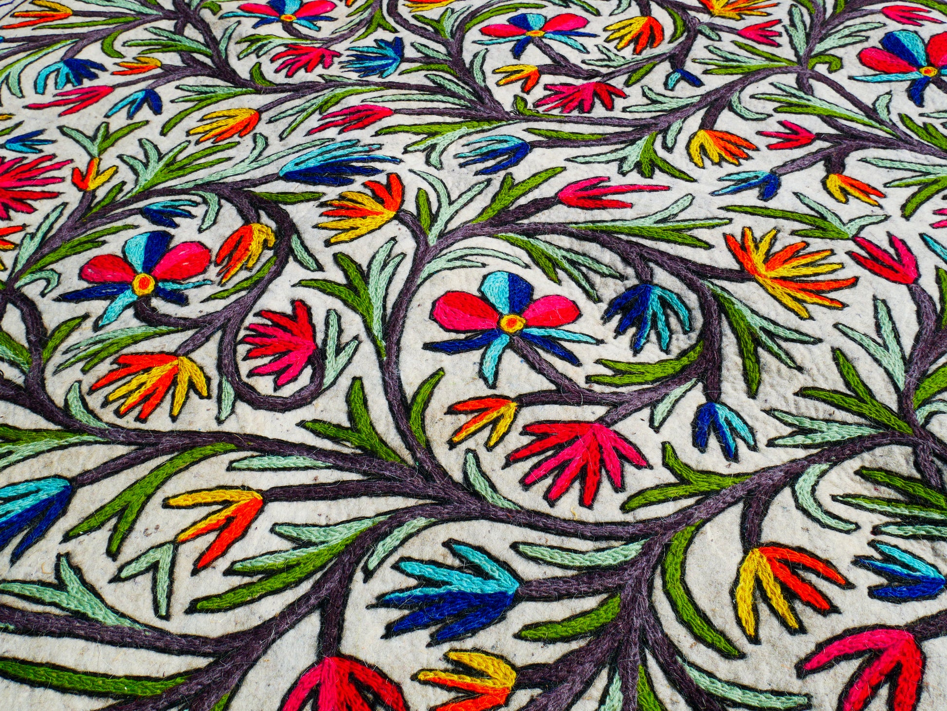 Hand felted rug "Namda" made of pure wool and hand embroidered