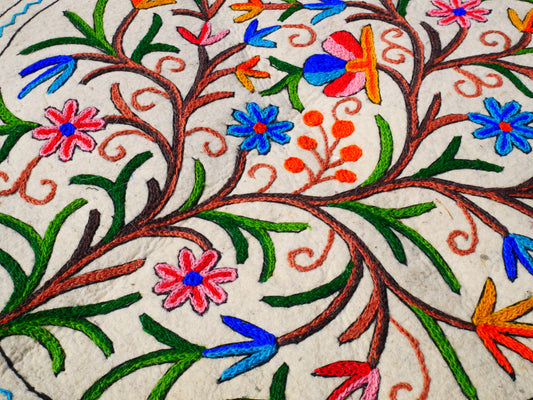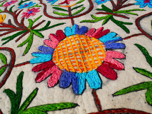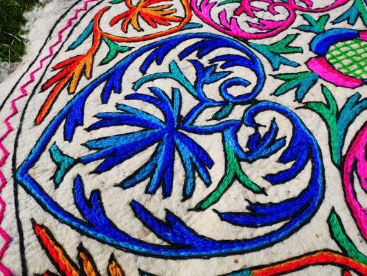 Boho Mandala Rug – Handcrafted Wool Namda from Kashmir, Colorful Embroidery