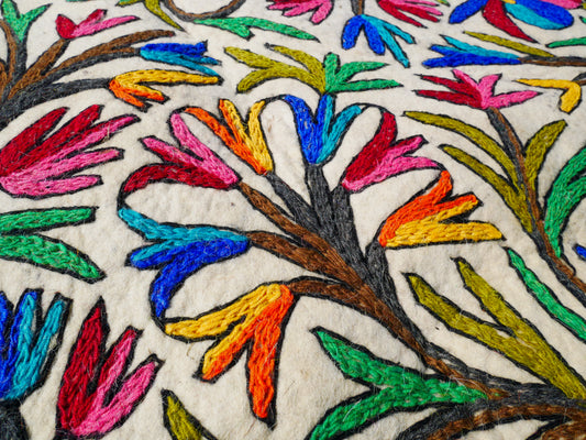 Large wool Namda rug "Himalayan Jewel" traditional Kashmiri rug, felted wool- hand embroidered 10x7