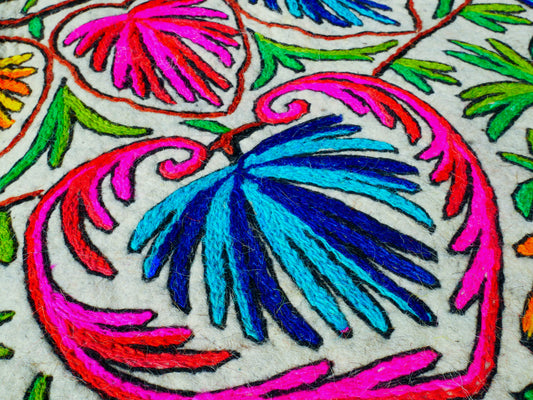 Boho Mandala Rug – Handcrafted Wool Namda from Kashmir, Colorful Embroidered Home Decor