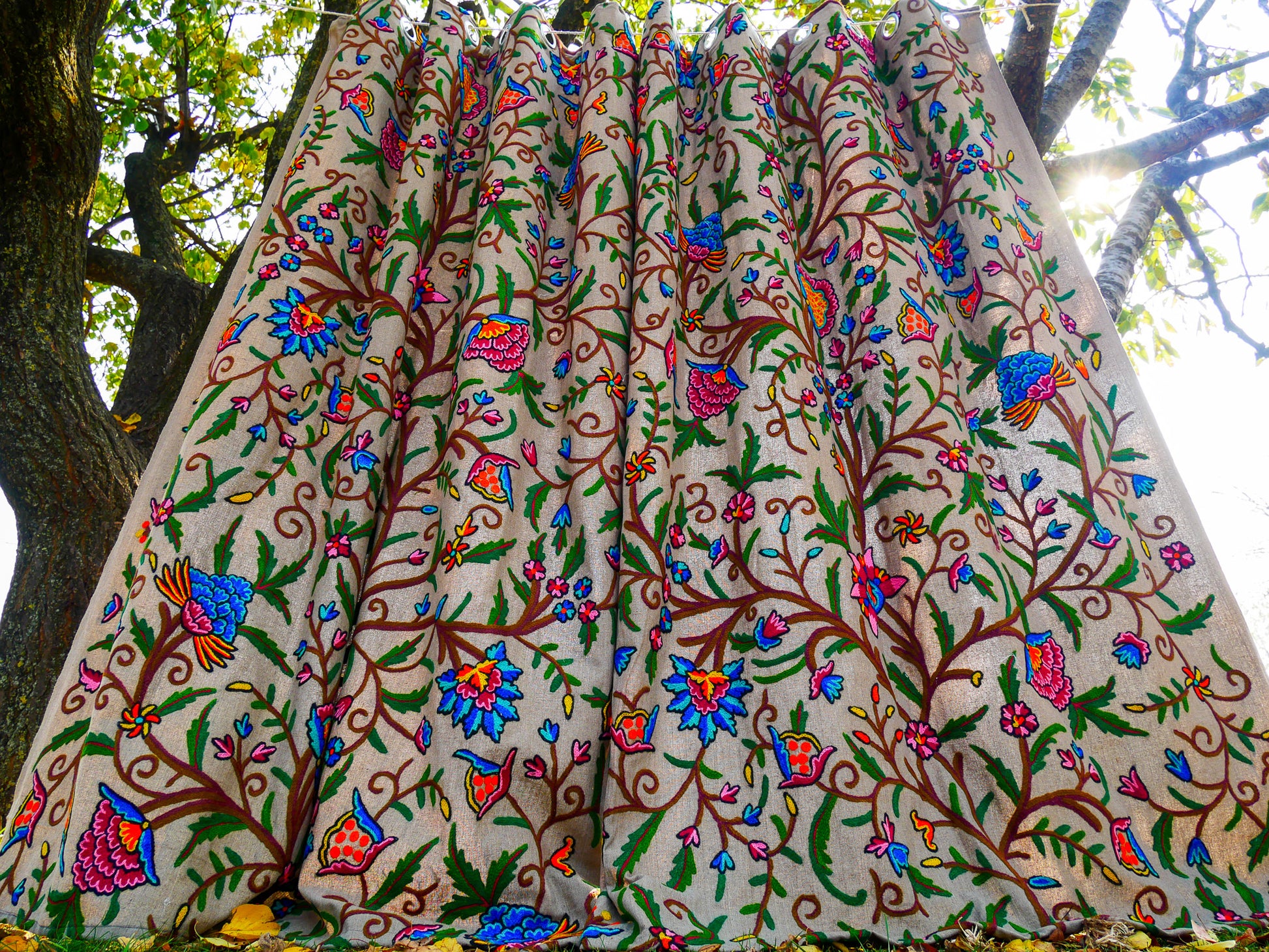 Indulge in the rich tradition of Mughal Crewel embroidery with our hand-embroidered Kashmiri Curtains