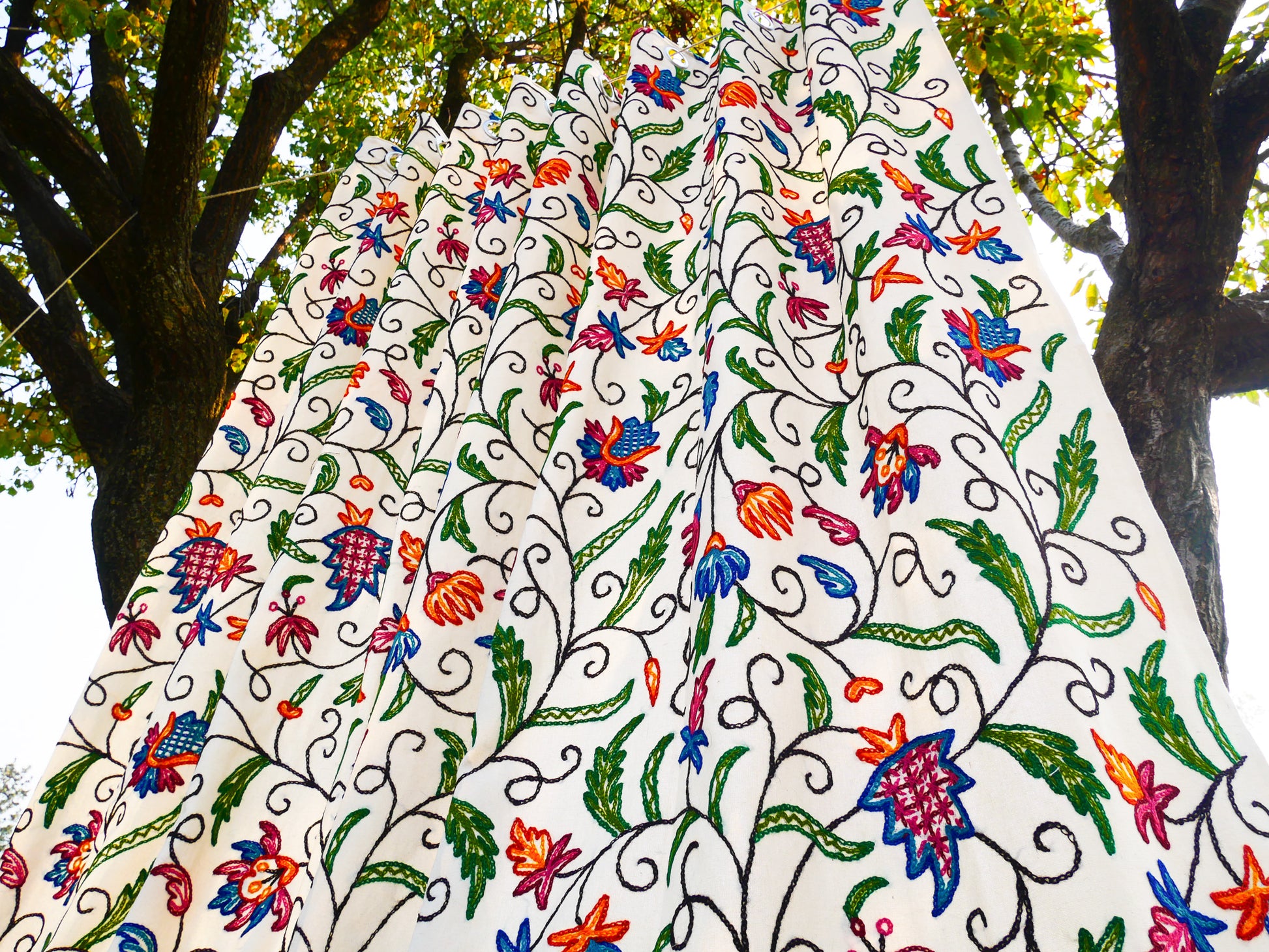 Indulge in the rich tradition of Mughal Crewel embroidery with our hand-embroidered Kashmiri Curtains