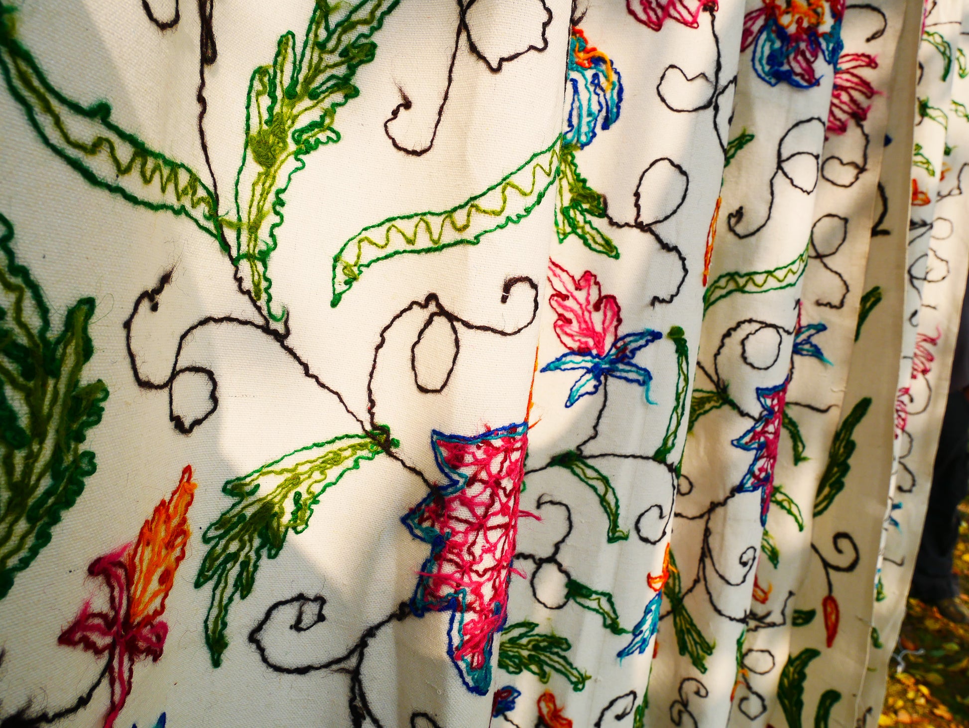 Kashmiri Embroidery curtain - Hand embroidered Flower curtains - cotton and wool bedroom curtain- Boho style