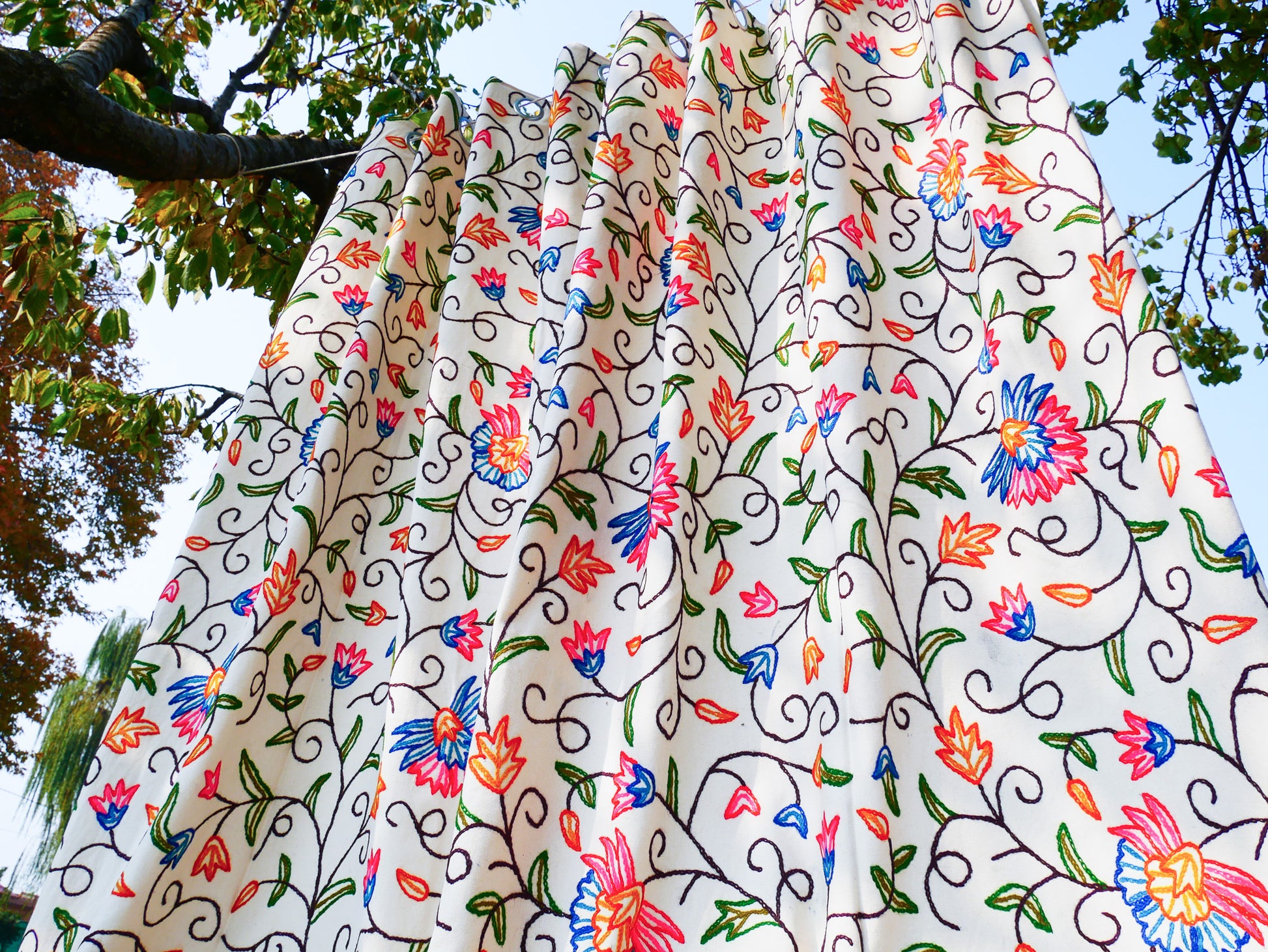 Indulge in the rich tradition of Mughal Crewel embroidery with our hand-embroidered Kashmiri Curtains