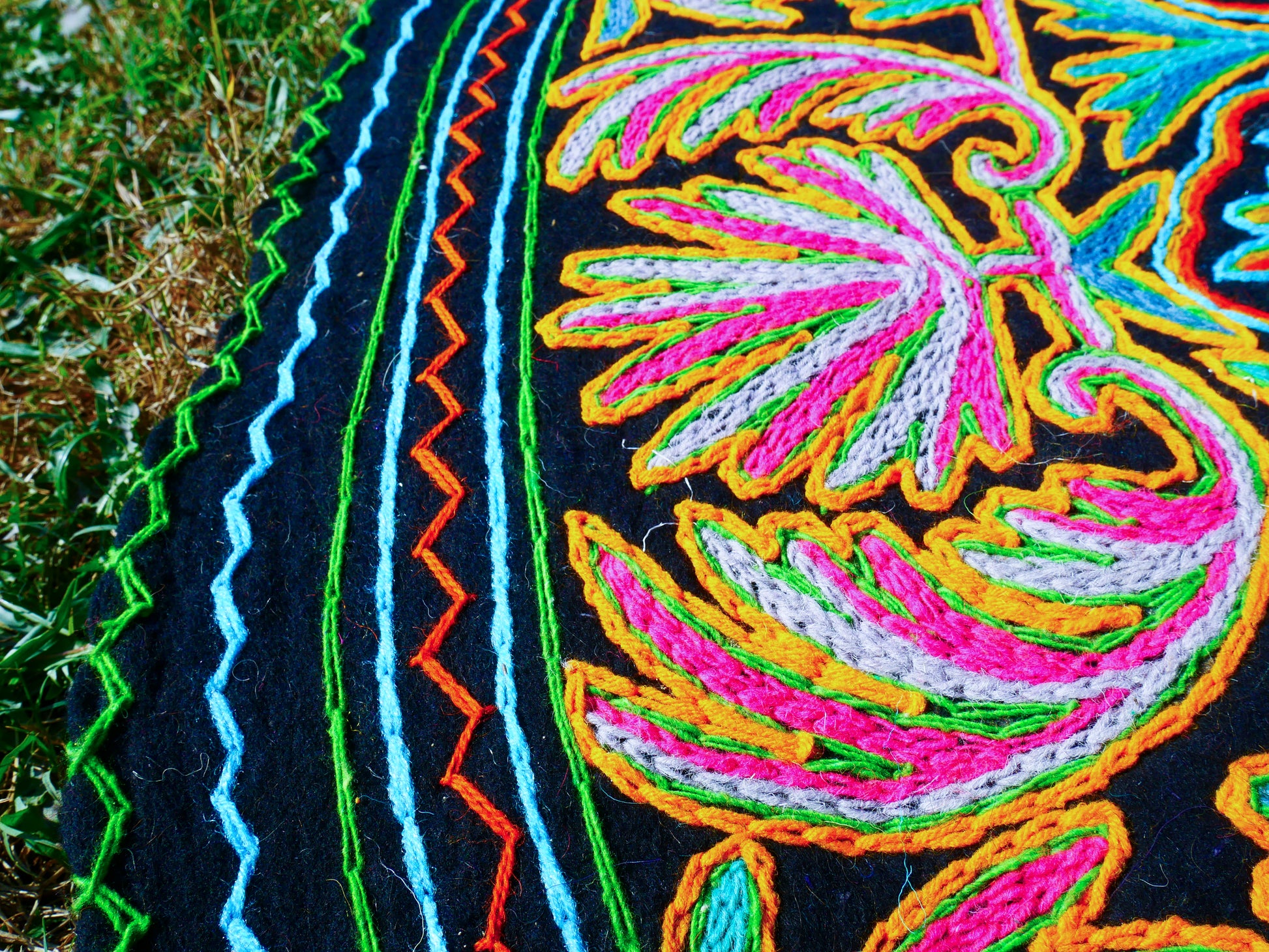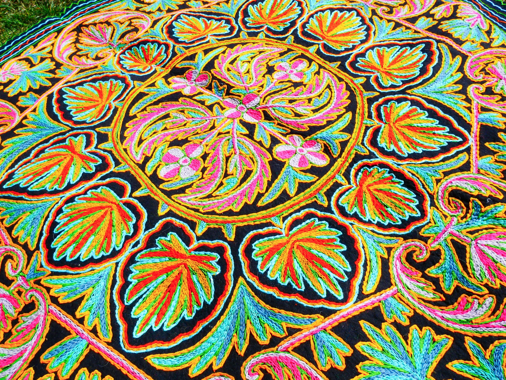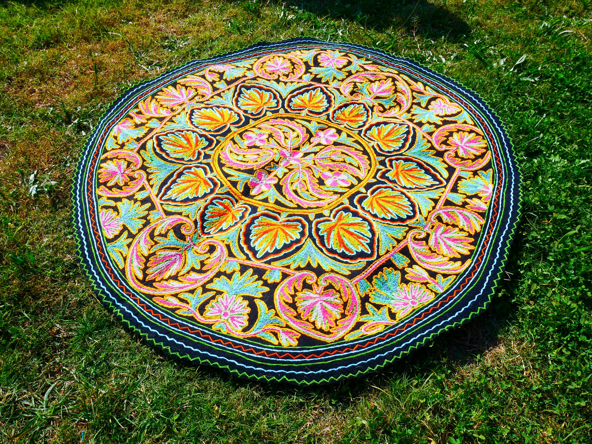 In the mystique state of Kashmir in the North Indian Himalayan region, no matter poor or rich, it is traditional to sit on the floor and the floor can get really cold in the Himalayan region of Kashmir. Namdas, made of pure wool - hand felted and embroidered, are not only decorative rugs and magical, unique pieces of textile art, but also the best answer to cold floors and perfect for beautiful floor seating arrangements. They are also used as decorative bed covers or to adorn any corner of the home with its beautiful embroidery as bohemian tapestry How about using it for your cozy boho bedroom corner? You will love the "natural feeling" of it!