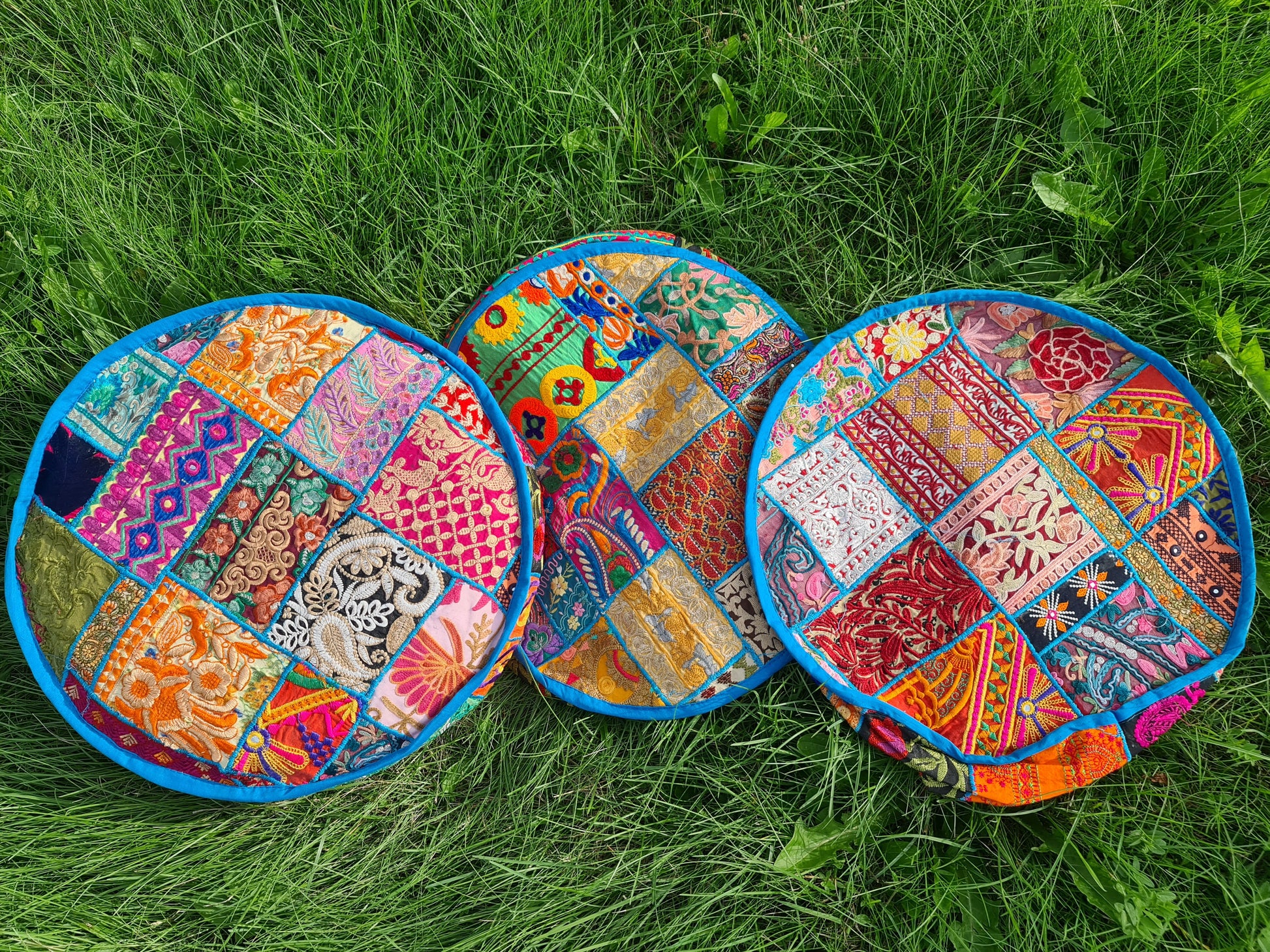 Meditation Cushion Cover – Indian Boho Patchwork Floor Pillow for Floor Seating